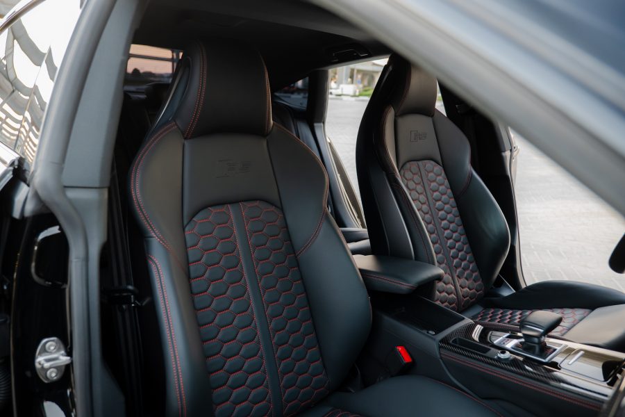 Inside, the RS5 Carbon Edition offers sport seats upholstered in Valcona leather with honeycomb stitching. These seats provide firm support and comfort for extended drives.