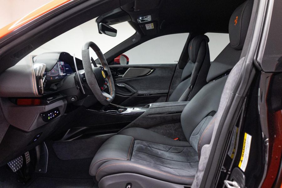 Inside, the Purosangue combines premium materials like leather, Alcantara, and open-pore wood. The cabin is spacious for a Ferrari, offering four individual seats with heating and ventilation options.