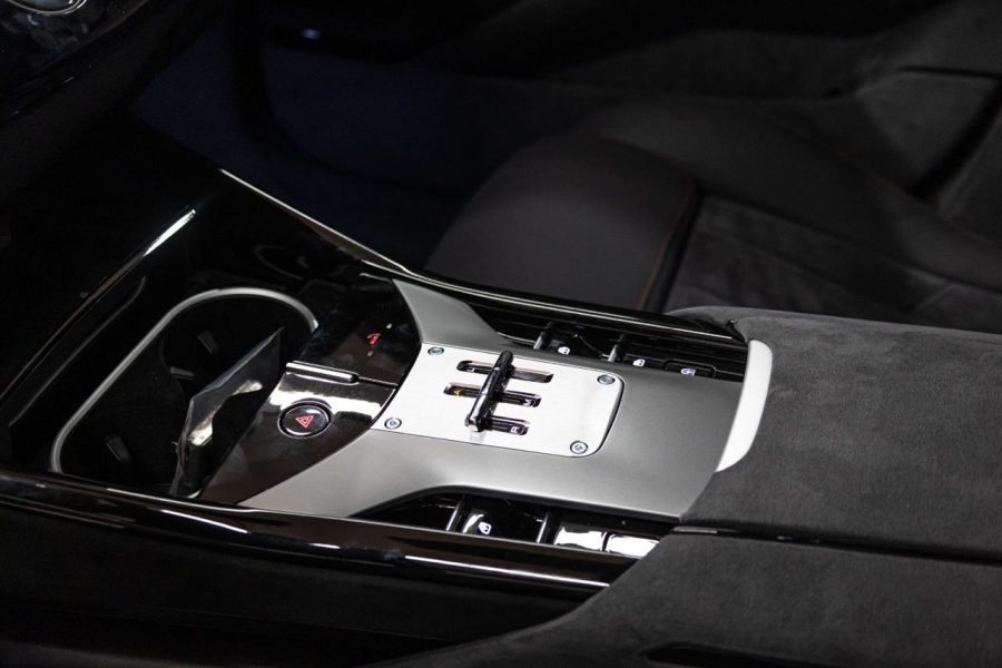 It features an advanced all-wheel-drive system to improve traction and handling. The suspension uses magnetorheological dampers for adjustable ride quality. The car includes multiple driving modes, such as Sport and Comfort, adapting to different driving conditions for optimal performance.