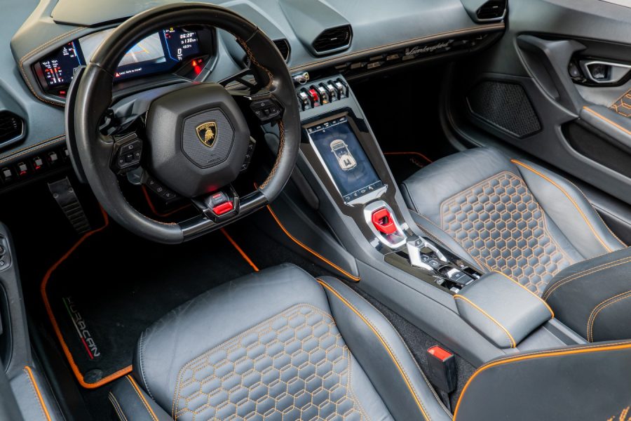 The Lamborghini Huracan EVO Spyder boasts a range of impressive features that make it a joy to drive. These include an adaptive suspension system that provides dynamic handling, a torque vectoring system that improves cornering, and an ANIMA drive mode system that allows for a customized driving experience. Additionally, the sophisticated aerodynamic design, complete with vents and fins, keeps the car firmly planted at high speeds.