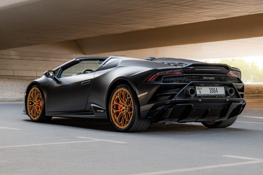 The rental price for a Lamborghini Huracan EVO Spyder is 3100 AED for one day.