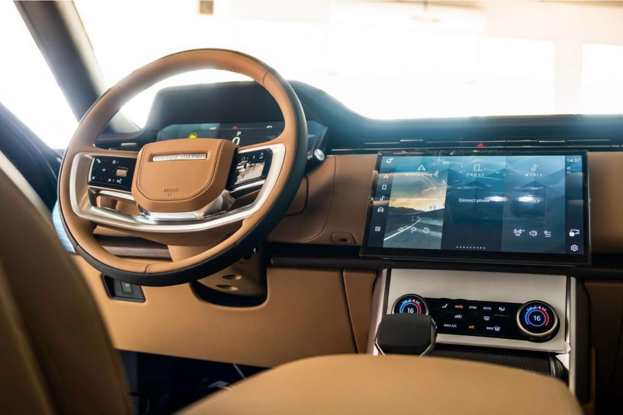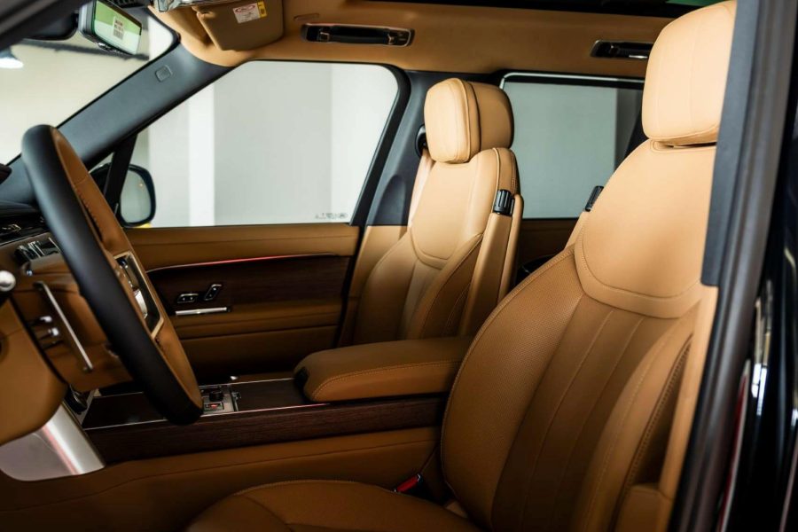 The Range Rover Vogue’s cabin is crafted with premium materials such as Windsor leather and real wood veneers. It offers heated and cooled executive seats with massage functions for both front and rear passengers. The infotainment system includes a 13.1-inch touchscreen with navigation, Apple CarPlay, and Android Auto compatibility.