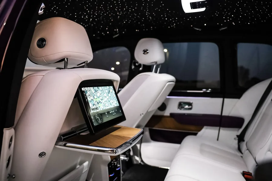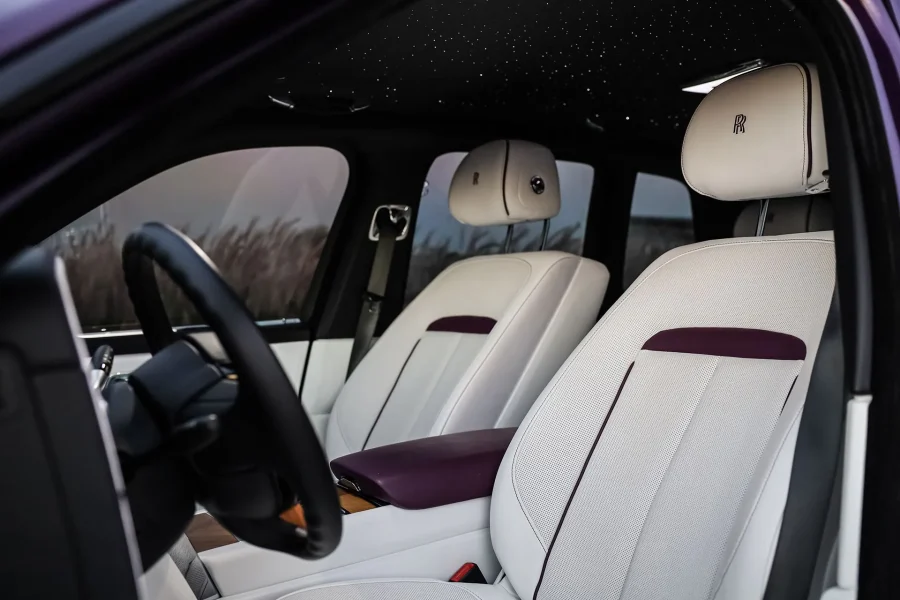 The exterior design of the Rolls-Royce Cullinan Violet stays true to the brand’s iconic aesthetic, with distinctive features such as large 22-inch wheels and rear doors that open in the opposite direction, adding to its allure. Inside, passengers are treated to heated seats and adjustable, elevated seating for up to three individuals, providing unparalleled comfort and panoramic views of Dubai’s scenery.